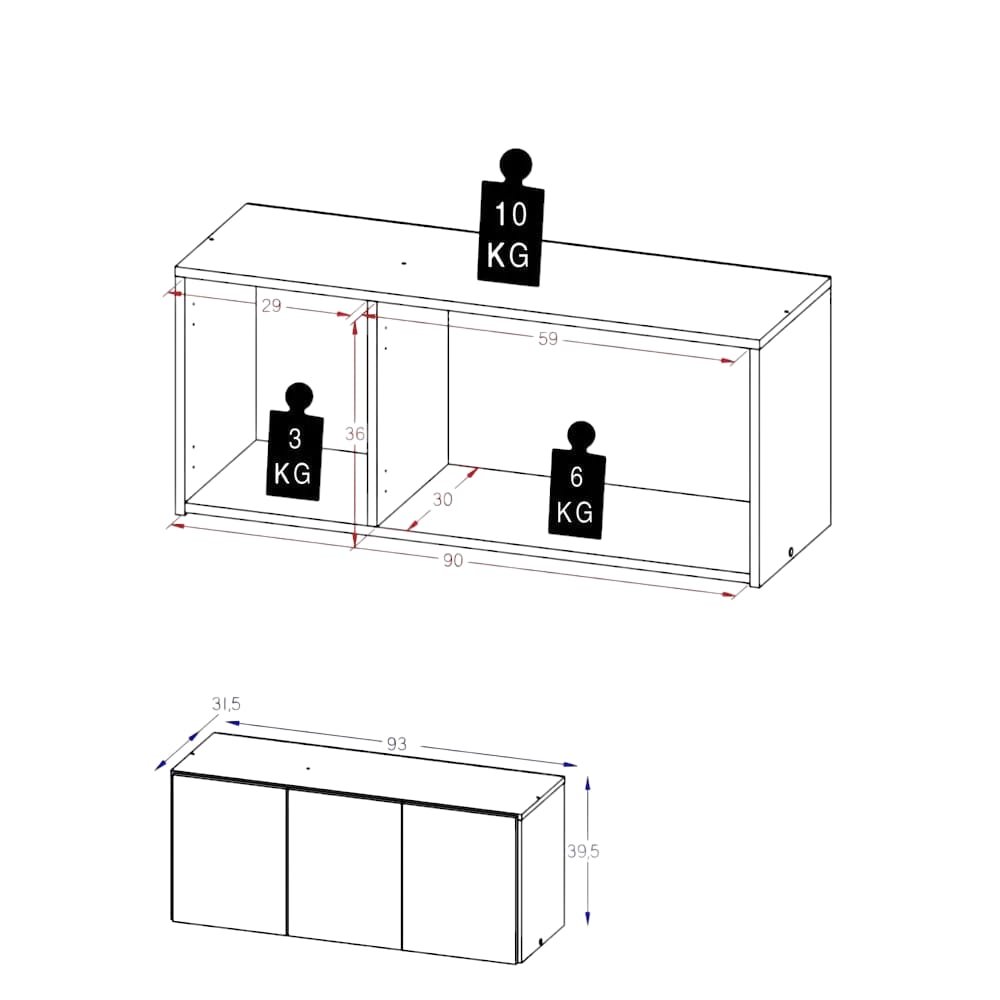 Optimiza tu espacio con la Alacena Mueble Colgante de 3 Puertas, un elemento esencial para toda cocina moderna. Con un elegante acabado en blanco y dimensiones de 93 cm de ancho, 39.5 cm de alto y 31.5 cm de profundidad, este mueble se adapta perfectamente a cualquier entorno, manteniendo su estilo contemporáneo sin sacrificar funcionalidad.