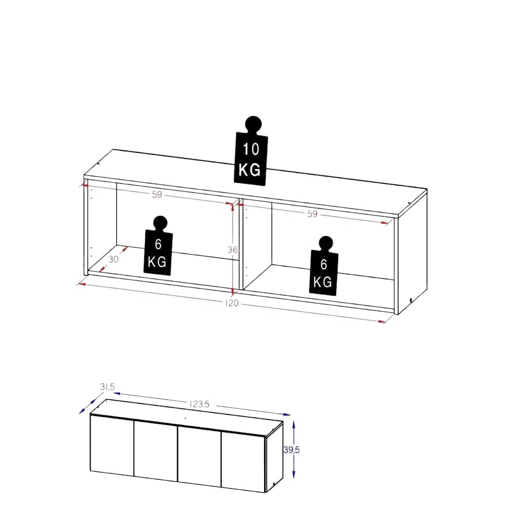Con una profundidad de 31.5 cm, una altura de 39.5 cm y un ancho de 123 cm, esta alacena es ideal para aprovechar al máximo el espacio disponible en tu cocina. Sus cuatro puertas ofrecen un amplio espacio de almacenamiento, permitiéndote mantener tus utensilios y alimentos organizados y al alcance de la mano.