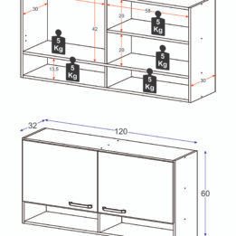Con unas dimensiones de 120 cm de ancho, 60 cm de alto y 32 cm de profundidad, ofrece un amplio espacio de almacenamiento.