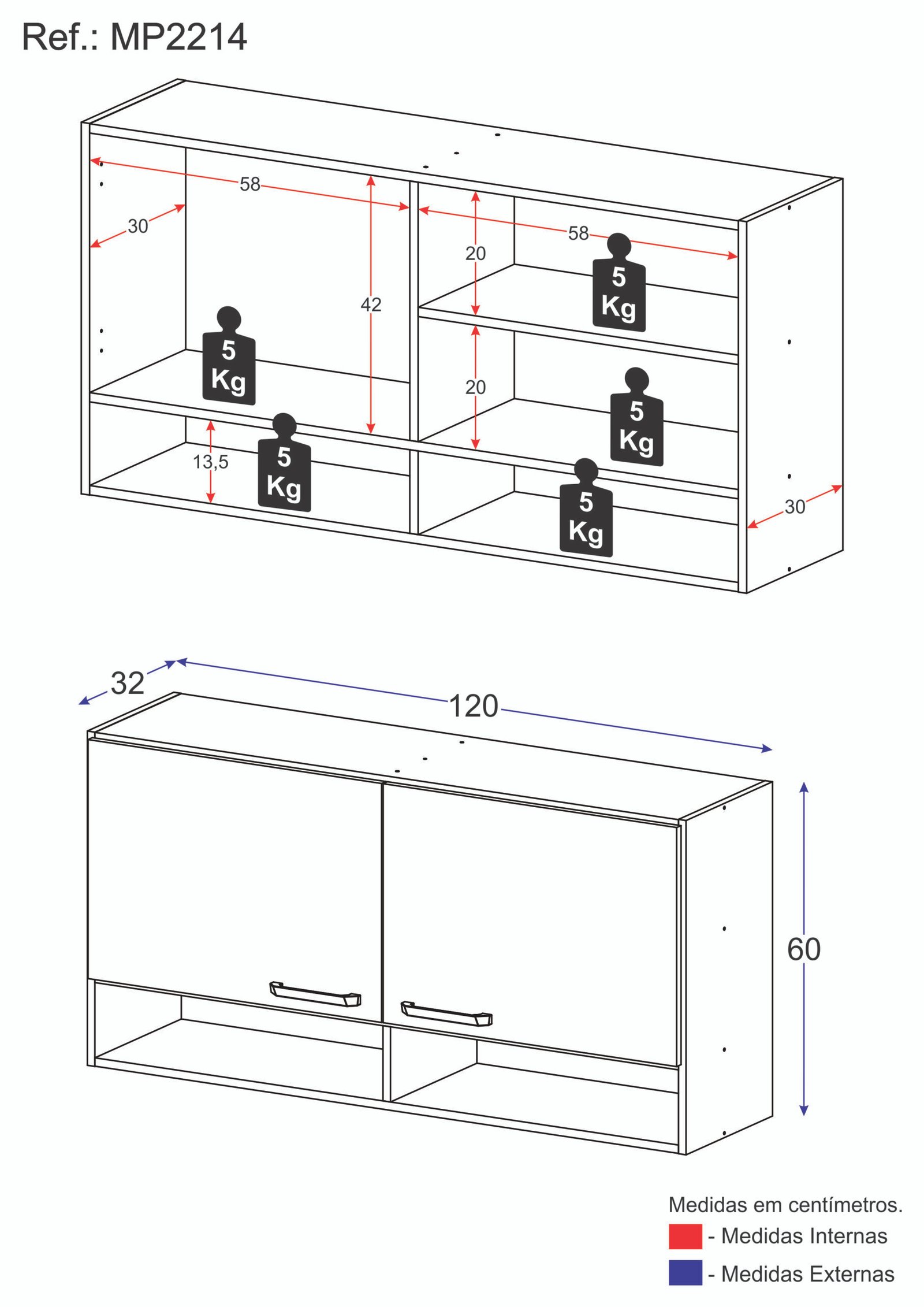 Sus dos puertas permiten un fácil acceso a los estantes internos, ideales para organizar utensilios, alimentos y otros elementos de cocina. Fabricada en MDP, garantiza durabilidad y resistencia en el uso diario.