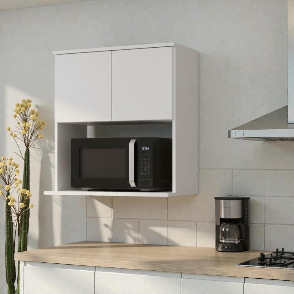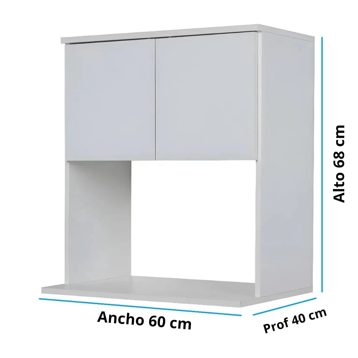 La Alacena Porta Microondas 2 Puertas 60cm Blanca de Mobilarg es la solución ideal para optimizar el espacio en tu cocina.
