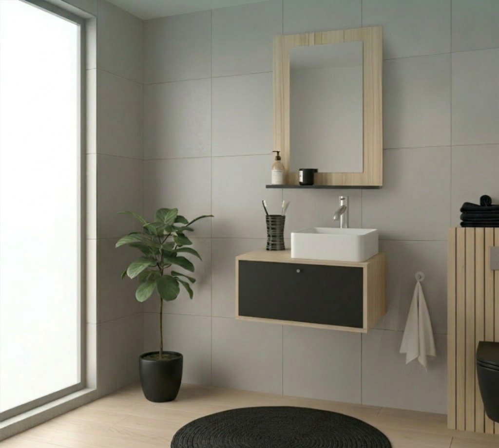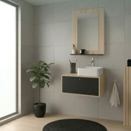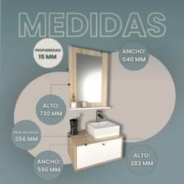 Su estante único permite organizar tus productos de higiene personal de manera ordenada, mientras que el espejo integrado facilita tu rutina diaria.