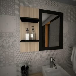 Con dos estantes, proporciona el espacio ideal para organizar tus productos de higiene y belleza, manteniéndolos siempre al alcance. El espejo integrado añade una capa de funcionalidad, permitiendo que te prepares cada día con comodidad y estilo.
