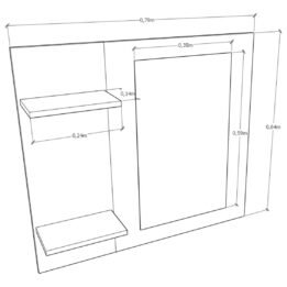 El botiquín está fabricado en melamina, un material durable y fácil de limpiar, asegurando que se mantenga en excelentes condiciones a lo largo del tiempo. Con dimensiones de 64 cm de largo y 79 cm de ancho, se adapta perfectamente a la mayoría de los espacios, optimizando el área sin sacrificar el estilo.