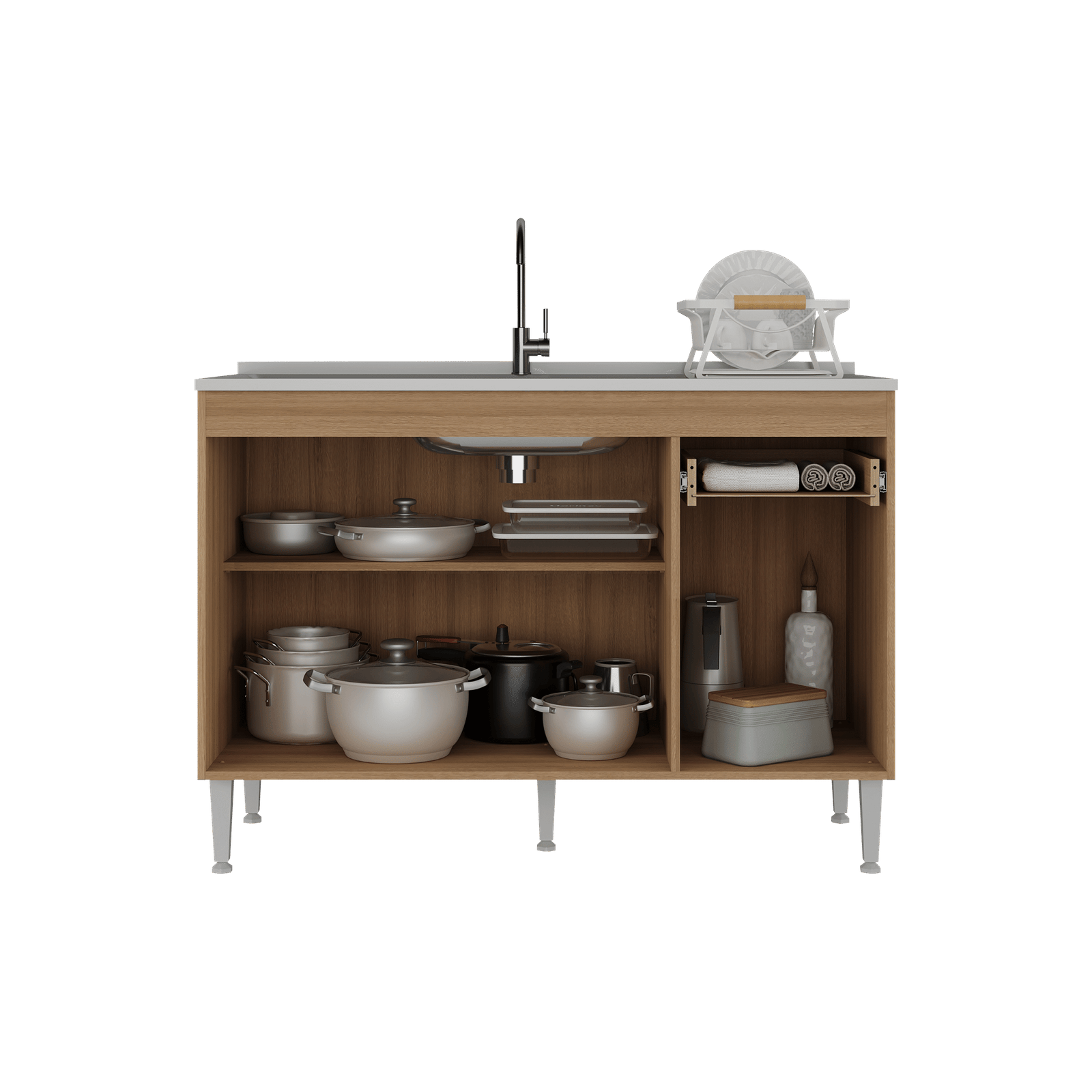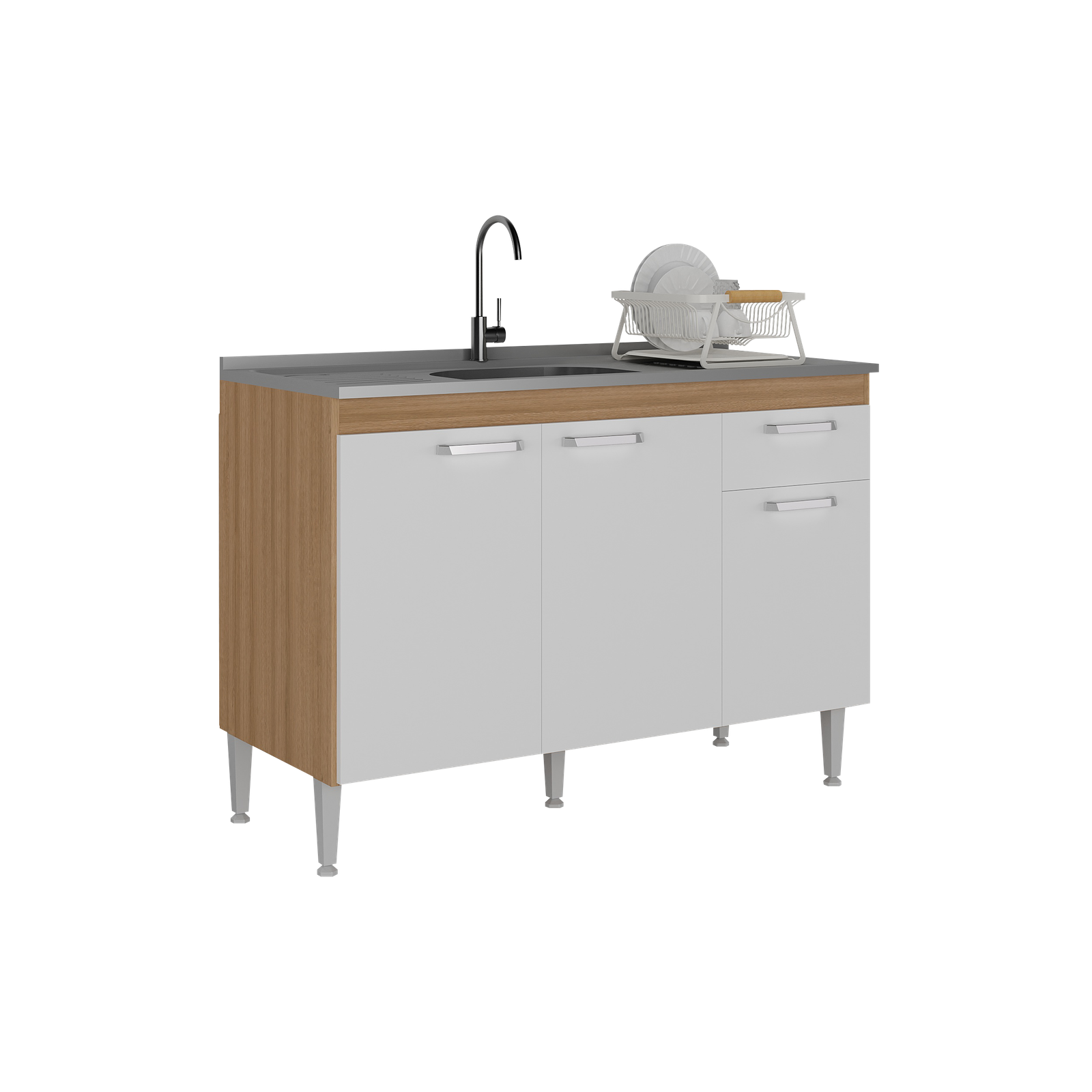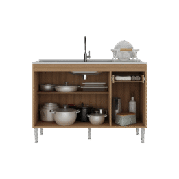 El bajomesada, con una altura de 87 cm y una profundidad de 51 cm, cuenta con un cajón que facilita la organización de utensilios y accesorios de cocina.
