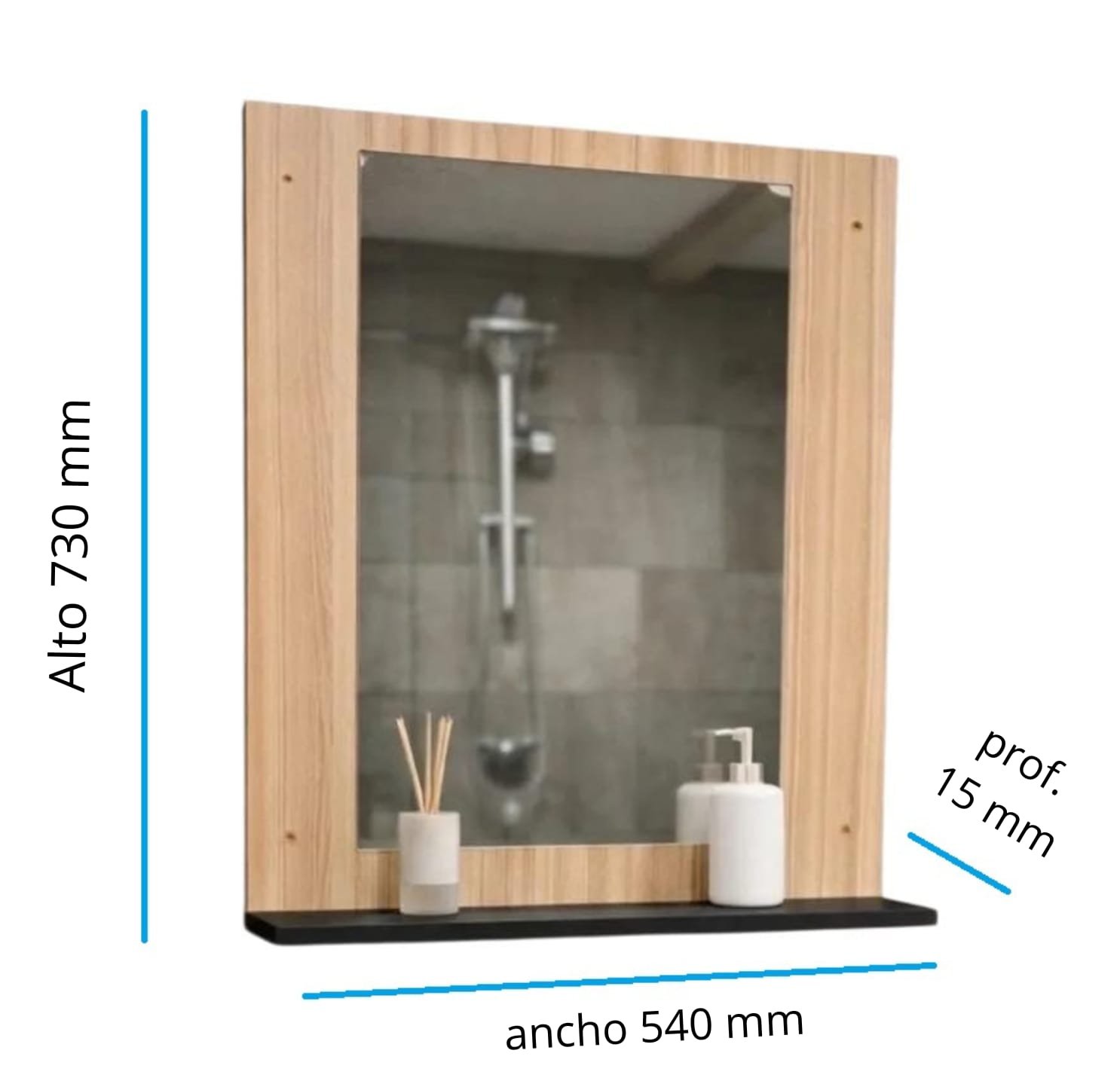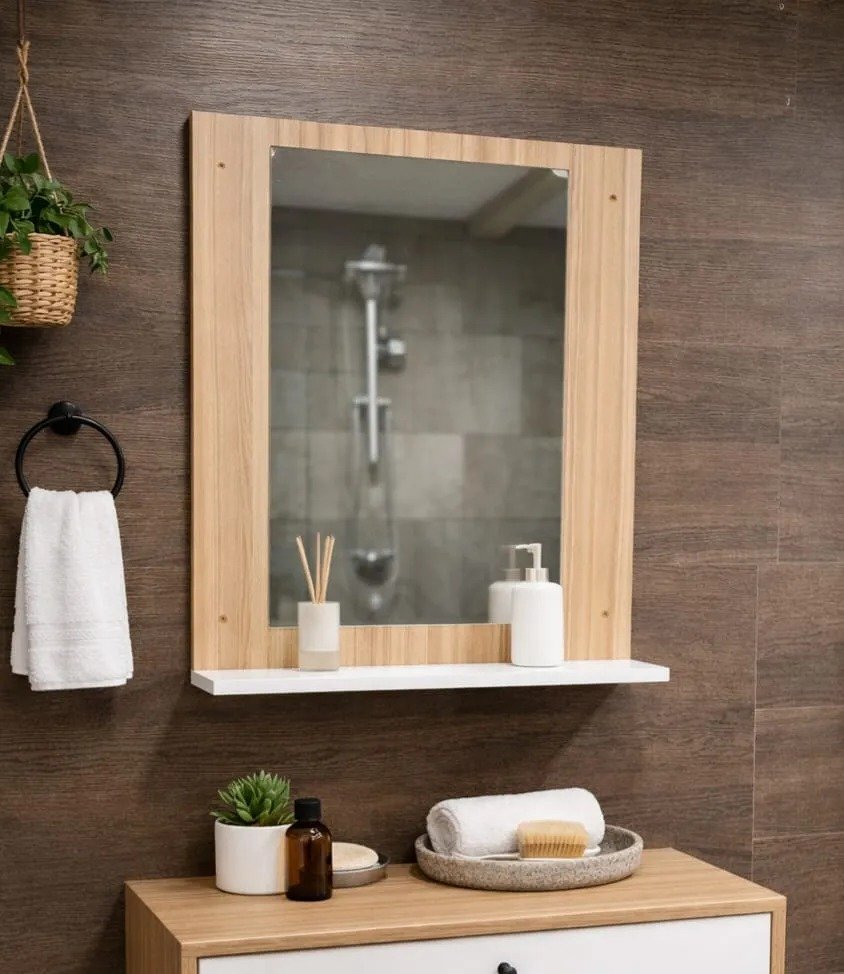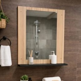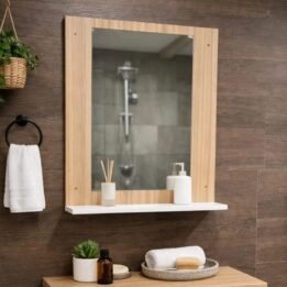 Con dos estantes, proporciona el espacio ideal para organizar tus productos de higiene y belleza, manteniéndolos siempre al alcance. El espejo integrado añade una capa de funcionalidad, permitiendo que te prepares cada día con comodidad y estilo.