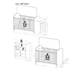 Con un acabado satinado en color blanco, esta cuna aporta un aire moderno y elegante, adaptándose fácilmente a cualquier decorado.