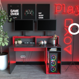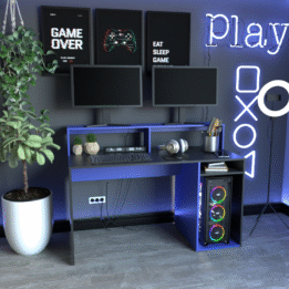 Este escritorio es la elección perfecta para quienes buscan un espacio de trabajo y juego funcional y moderno.