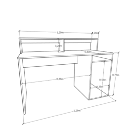 Con un diseño ergonómico y elegante, este escritorio cuenta con una profundidad de 60 cm y un ancho de 129 cm, ofreciendo suficiente espacio para dos monitores y otros dispositivos.