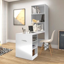 Este escritorio incluye una biblioteca integrada que te permite organizar tus libros y materiales de trabajo, manteniendo todo al alcance de la mano. Su altura de 182 cm y capacidad de peso de 50 kg aseguran que sea robusto y resistente, ideal para tus necesidades diarias. Además, su estructura de MDP garantiza durabilidad y fácil mantenimiento, lo que lo convierte en una opción práctica para el hogar o la oficina.