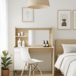 El Escritorio Maquillador Tocador Con Espejo 3115 es más que un simple mueble; es una declaración de estilo que realza la belleza de tu hogar. Ideal para quienes valoran la estética y la funcionalidad, este tocador se convertirá en el centro de atención de tu espacio personal.