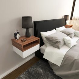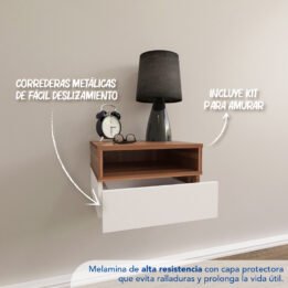 La Mesa de Luz Flotante con Cajón y Estante Minimalista Pack x2 es la solución perfecta para quienes buscan funcionalidad y estilo en su espacio.