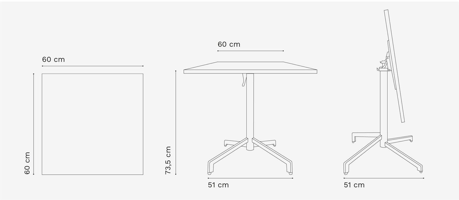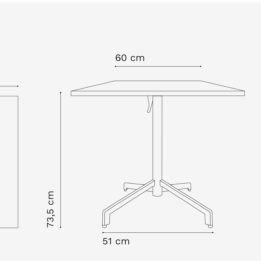 Con un diseño cuadrado y dimensiones de 60 cm de largo y 60 cm de ancho, esta mesa se adapta perfectamente a cualquier rincón de su jardín o terraza.