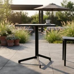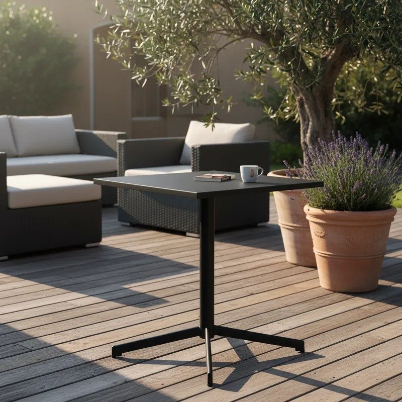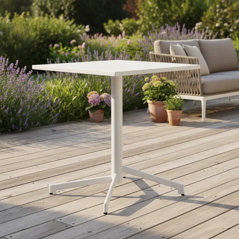 La Mesa Metálica Flip 60×60 Rebatible es la solución ideal para quienes buscan funcionalidad y estilo en su espacio exterior.