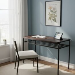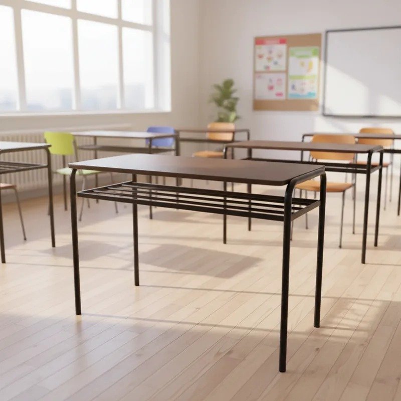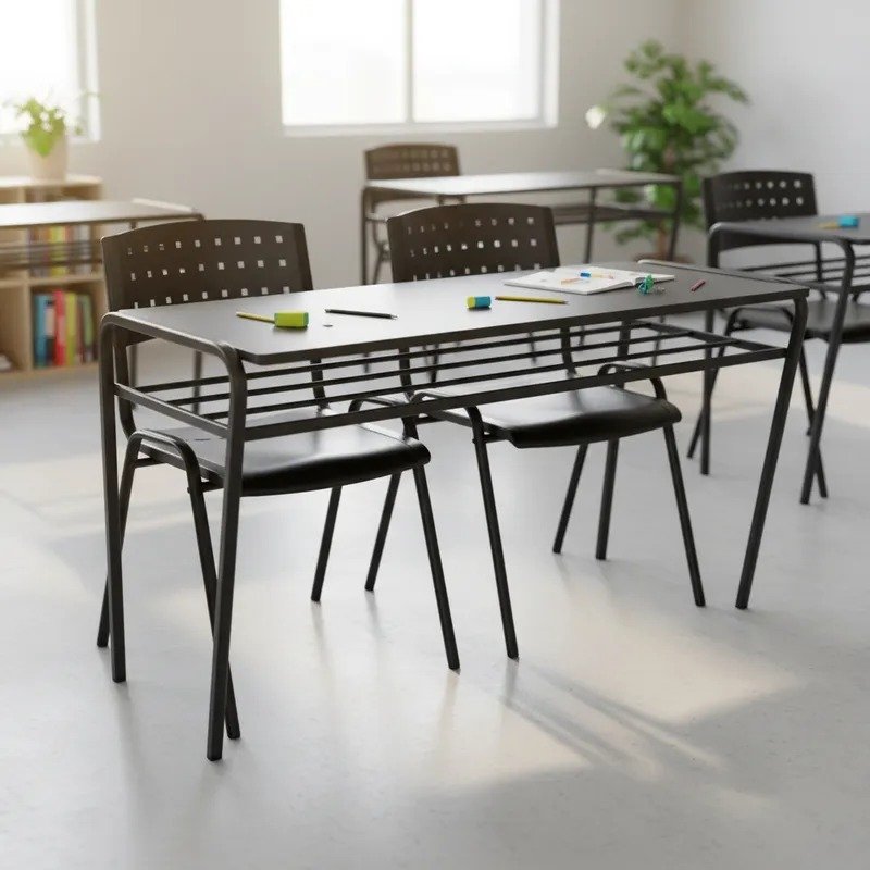Con un diseño elegante en color negro, este pupitre se adapta perfectamente a cualquier ambiente, ya sea en casa o en una escuela. Su estructura de caño garantiza durabilidad y resistencia, mientras que la madera ofrece un acabado atractivo y fácil de mantener.
