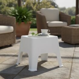 Fabricada en plástico de alta calidad, esta mesa es ideal para disfrutar de momentos especiales en el jardín o en la terraza. Su estructura robusta asegura durabilidad, convirtiéndola en una opción práctica para toda la familia. Además, su diseño cuadrado optimiza el espacio, facilitando la disposición de asientos a su alrededor.