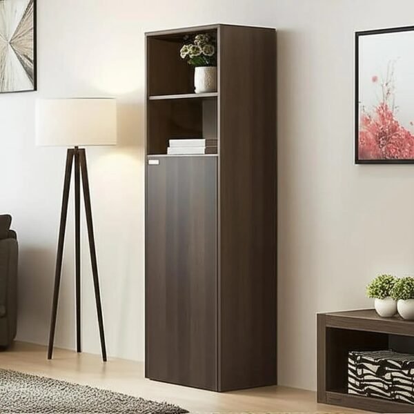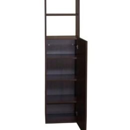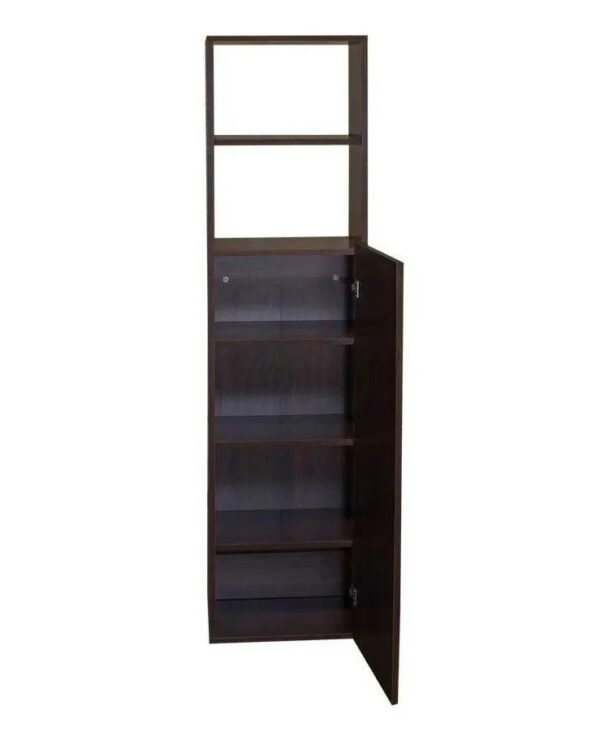 Este elegante mueble en color Tabaco cuenta con una puerta y cinco estantes, de los cuales cuatro son regulables, permitiéndote personalizar la distribución según tus necesidades.