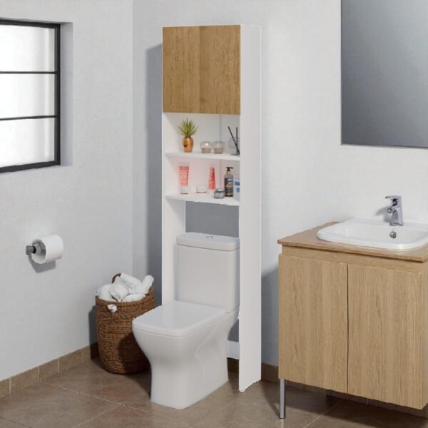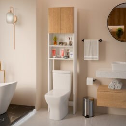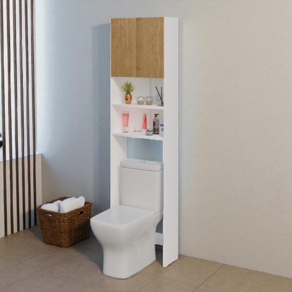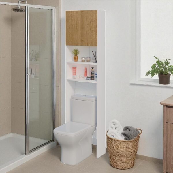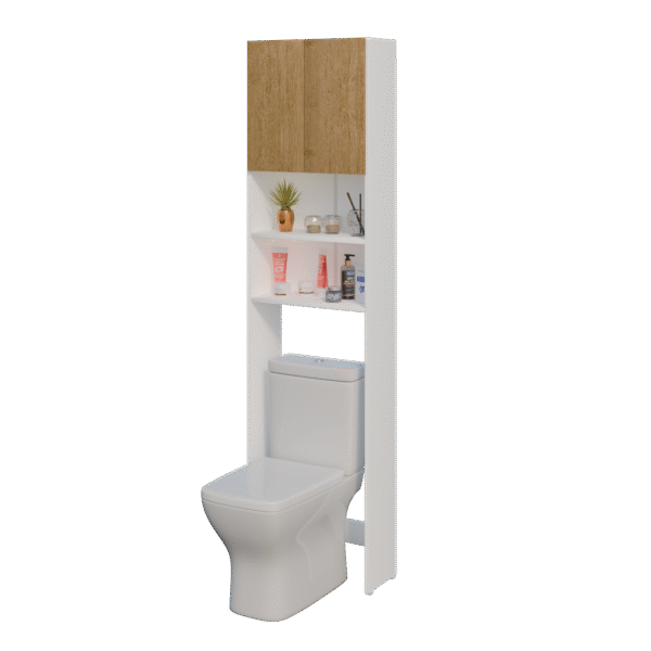 Este elegante y funcional mueble está diseñado para aprovechar ese espacio a menudo olvidado detrás del inodoro, combinando estilo y practicidad en una sola pieza.