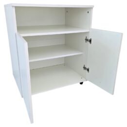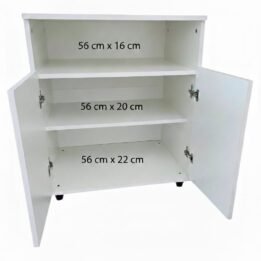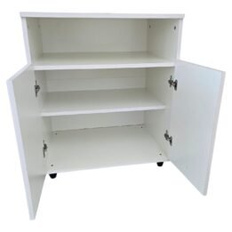 Este despensero cuenta con dos puertas que ocultan un amplio espacio de almacenamiento, además de tres estantes que te permiten organizar tus utensilios y alimentos de manera eficiente.