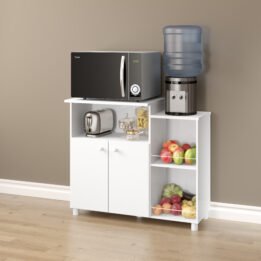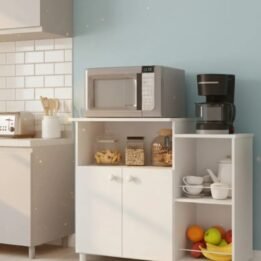 El Armario Multiuso 2 Puertas 3 Estantes Porta Microondas Blanco es la solución ideal para quienes buscan optimizar el espacio en su cocina.