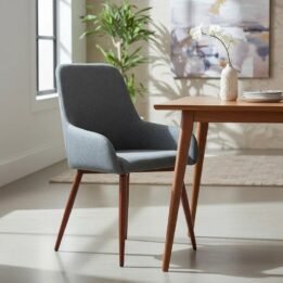 Con una estructura robusta de metal y un tapizado en tela, esta silla combina durabilidad y estilo, adaptándose a cualquier ambiente contemporáneo.
