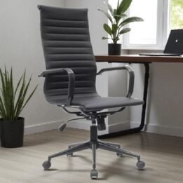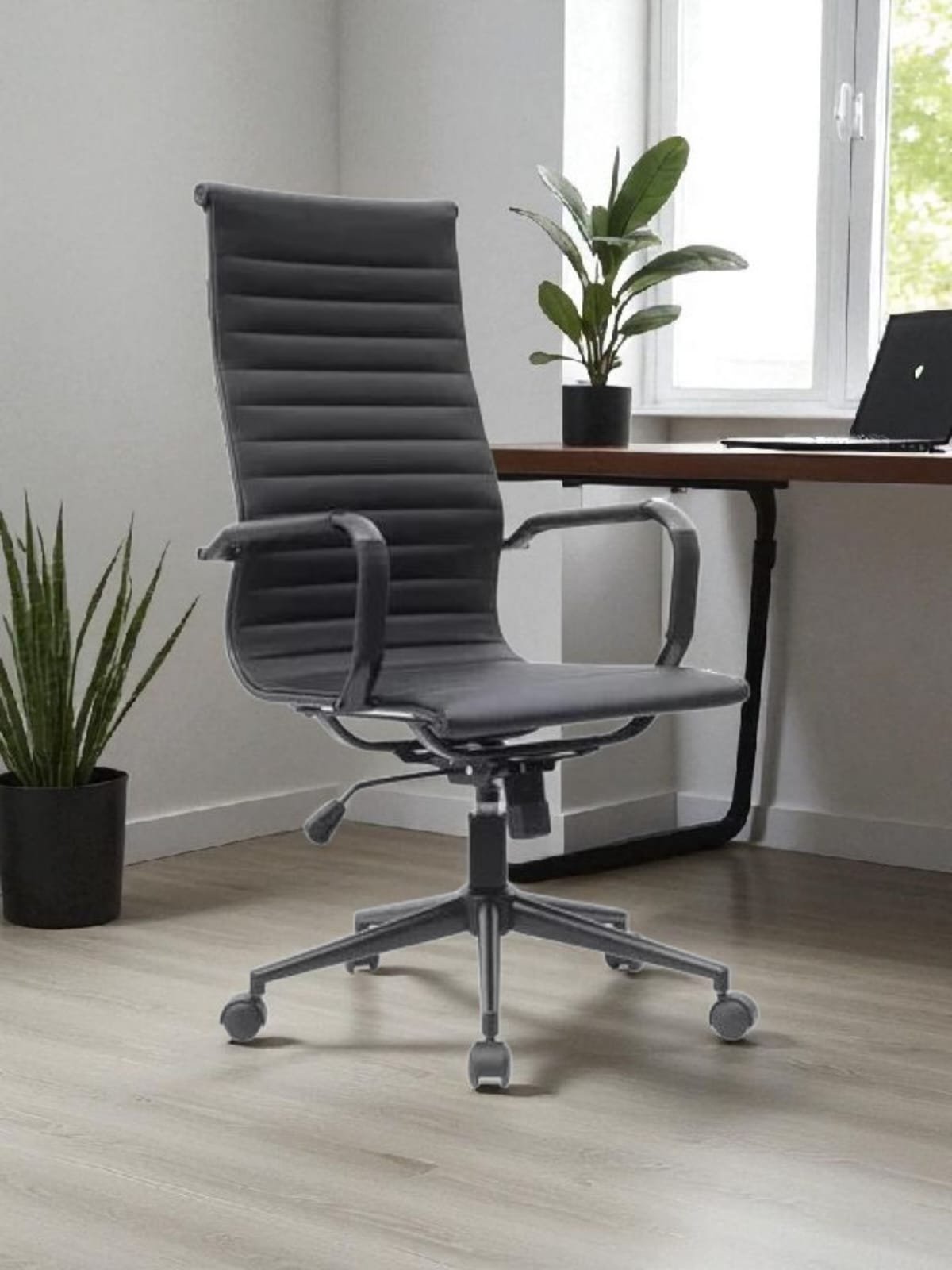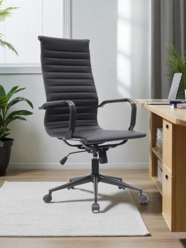 Sillón Ejecutivo Gerencial Aluminium Alto. Estructura 100% negra, eco cuero de alto tránsito y sistema basculante.