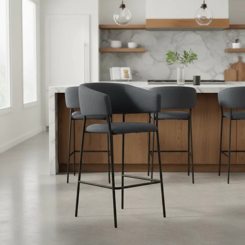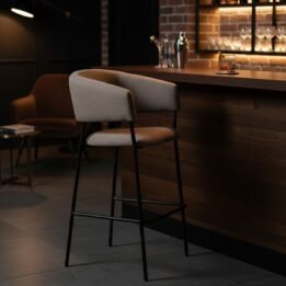 Con cuatro patas estables y un respaldo que brinda un soporte adicional, este taburete es perfecto para disfrutar de largas charlas en la barra. Además, cuenta con apoyabrazos y un apoya pies que mejoran la experiencia de uso.
