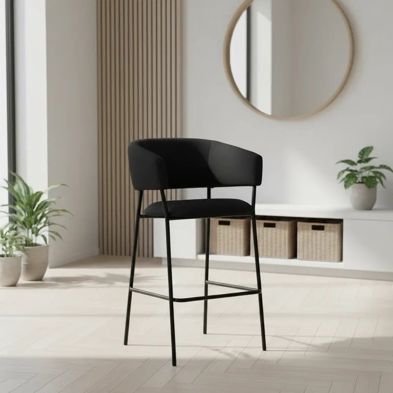 Su estructura de caño negro garantiza durabilidad, mientras que el tapizado proporciona un toque de elegancia.